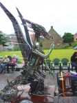 Scales is 3 Meter tall, about 2 Meter wide, en 2 meter deep, She weighs about 150 Kg, is detachable for transport, she can move here wings pneumatically and breathes Smoke when angered, ( wanted to use fire but gave to many insurance issues )
