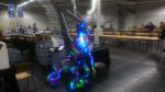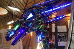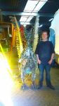 Scales is 3 Meter tall, about 2 Meter wide, en 2 meter deep, She weighs about 150 Kg, is detachable for transport, she can move here wings pneumatically and breathes Smoke when angered, ( wanted to use fire but gave to many insurance issues )